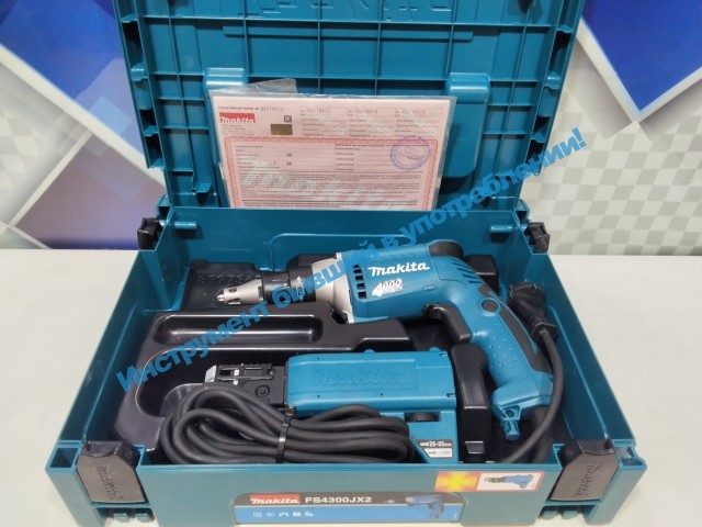 Makita FS4300JX2 — профессиональный сетевой шуруповёрт для серийного завинчивания шурупов, предназначенный для монтажа гипсокартона и других листовых материалов. Инструмент разработан для высокой скорости работы и точного контроля глубины завинчивания