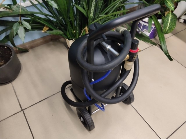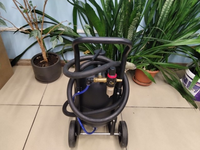 Пескоструйный аппарат 17 л предназначен для очистки воздушно-пескоструйным способом внутренних и наружных поверхностей от старой краски, ржавчины, окалины, различного рода загрязнений, обезжиривания поверхностей при ремонте зданий, а также для подготовки поверхности под покраску при ремонтных работах на энергетических, судоремонтных, автомобильных сервисах и других ремонтных и производственных предприятиях. Для подключения потребуется компрессор.
